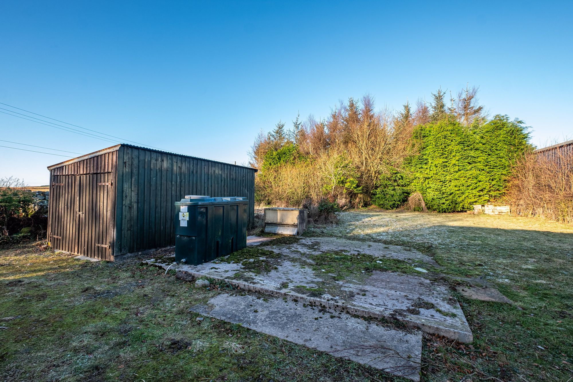 Externally the property sits in extensive grounds with beautiful views of Whita Hill and surrounding countryside. At the front of the property there is a large area of lawn with hedging to both sides. At the rear of the property this is an area for off-street parking, detached timber garage and outbuilding. There is an additional section of lawn at the rear of the property.
