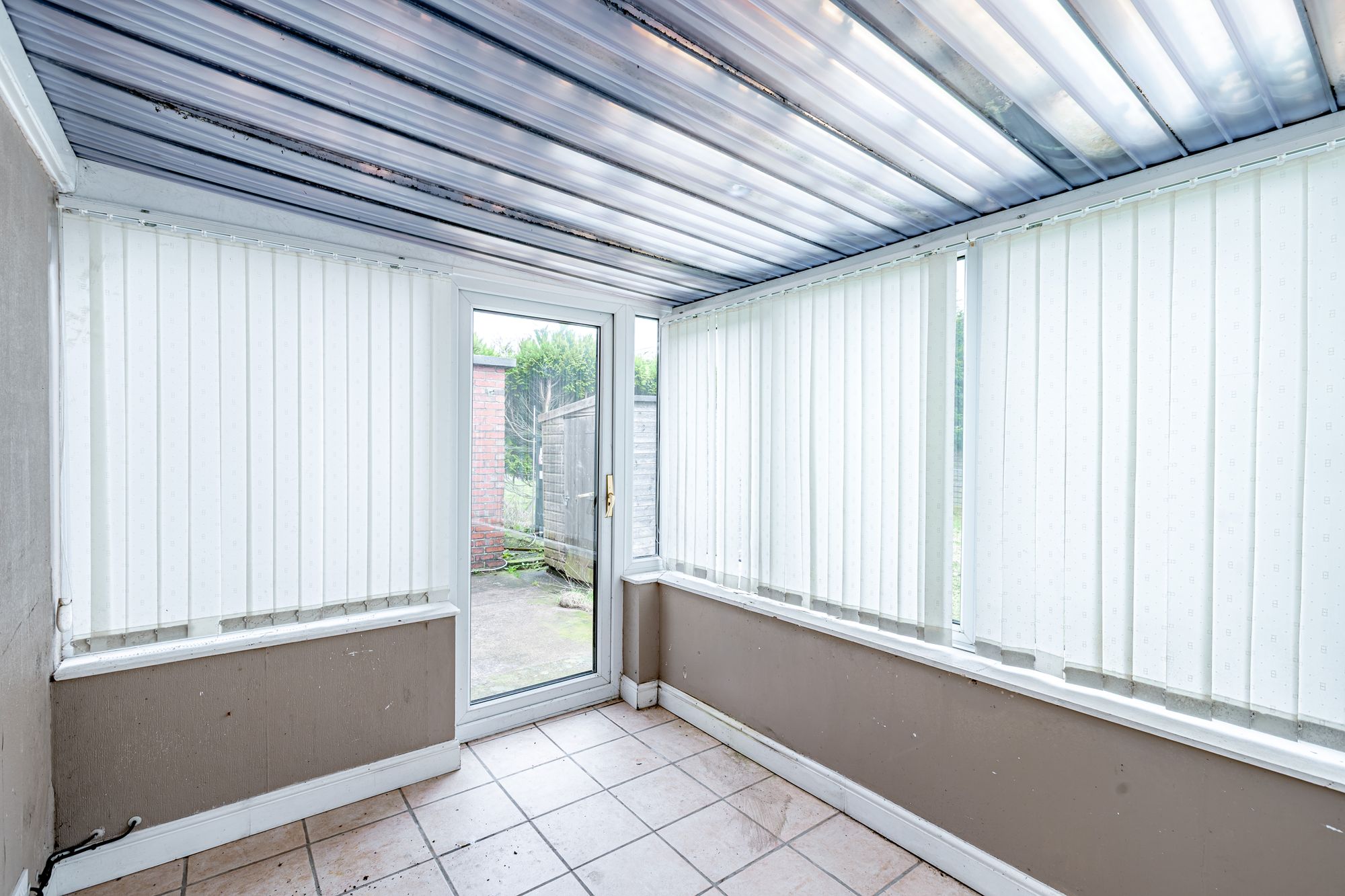 The living room is large enough to incorporate a dining table and has a fire surround housing an electric fire. Sliding glazed doors open into the conservatory, which has a door out to the rear garden.