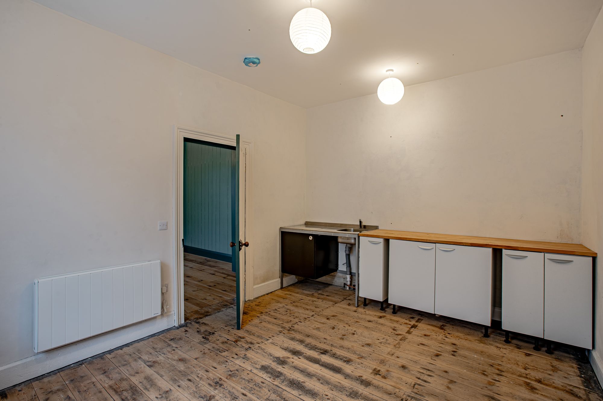 The building is of traditional stone construction with a pitched slate roof. The property is situated on a pleasant street within the historic town of Langholm providing an excellent opportunity for running a business or conversion to a residential one bedroom property subject to planning consents. The workshop has potential to make an excellent sized bedroom with plumbing and electrics provided for the installation of an en-suite shower room. The kitchen currently features a range of modern cabinets with a highly efficient water heater installed under the sink and could be reconfigured into a lovely kitchen/dining area.