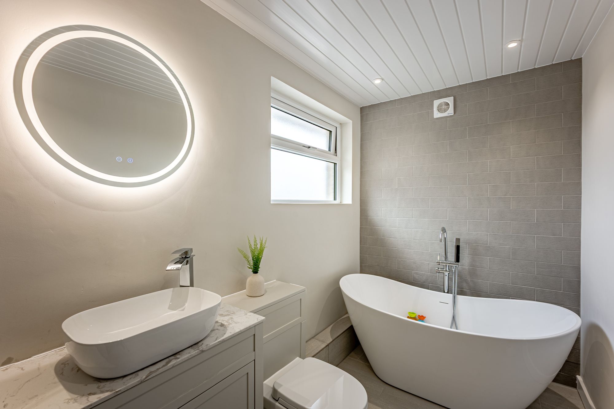The first floor offers four double bedrooms with the principal bedroom suite featuring an ensuite shower-room with double walk in mains fed shower, led touch screen mirror above hand wash basin with vanity unit and WC. There are a further 3 good size bedrooms, one of which is being utilised as a dressing room but would easily fit a double bed. The family bathroom has been finished beautifully, boasting a deep tub, freestanding bath, hand wash basin on a granite surface with vanity unit beneath and led touch screen mirror above and WC. Access to the loft is through a hatch on the landing, which is boarded and well insulated.
