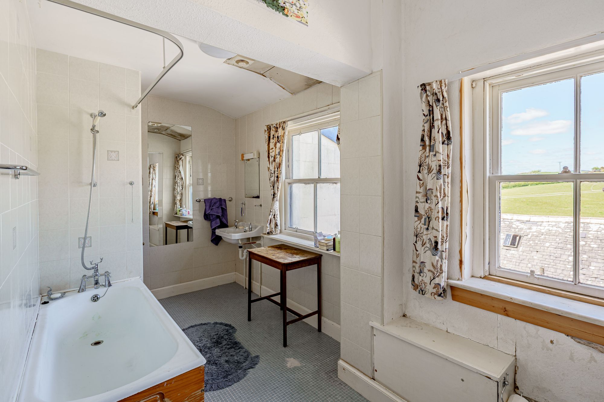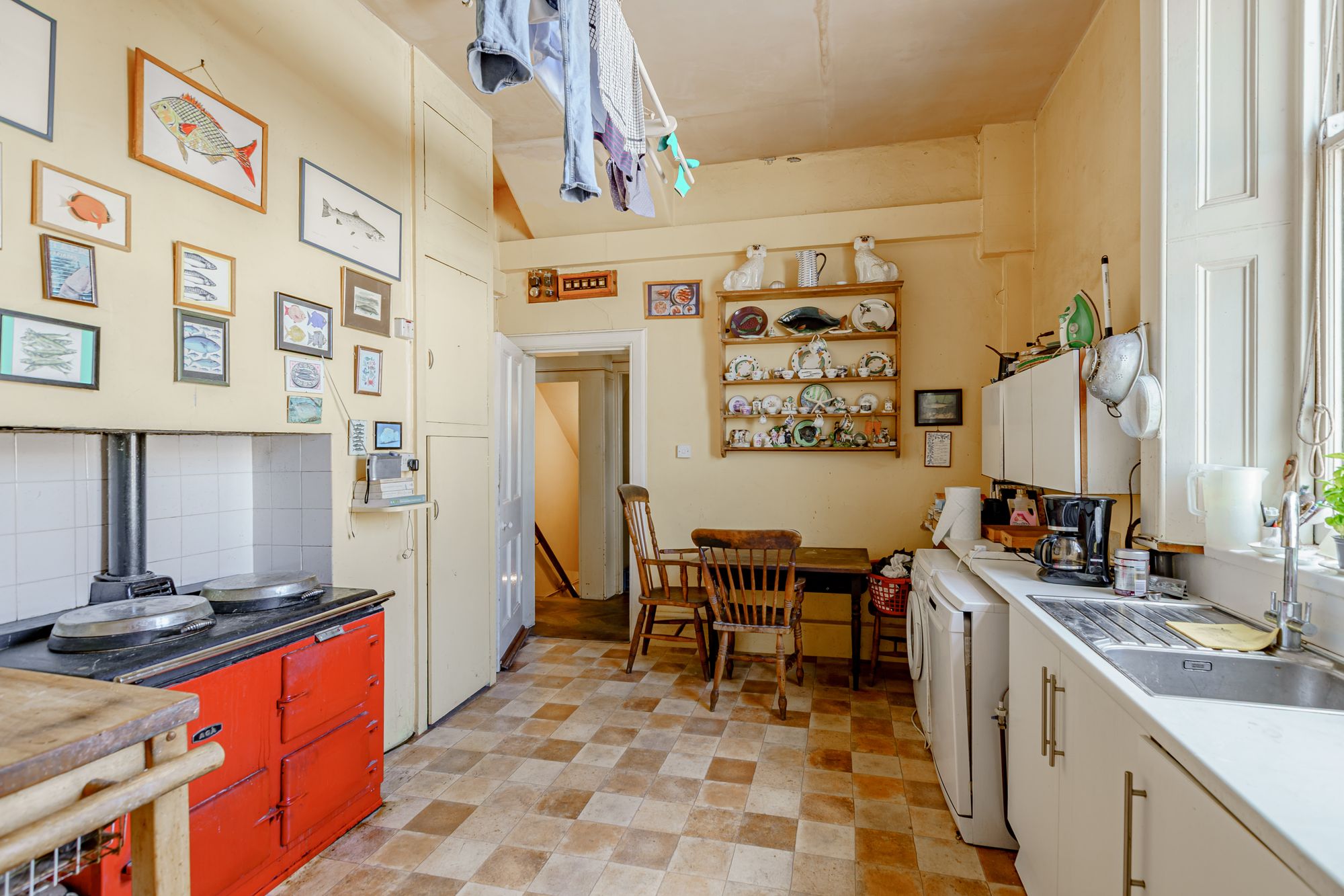 The primary feature of the kitchen is the two plate, oil fired AGA which is still an excellent source of cooking. The kitchen is large and is currently fitted with a range of floor and wall kitchen units and present an excellent opportunity to modernise and redesign. There is plenty of storage available in the kitchen and hot water tank located next to the AGA. Outside of the kitchen is a useful pantry cupboard and door which leads to the cellar below. The property has previously been extended to offer additional rooms including a rear porch, office, utility area and single lavatory. The boiler is located in the utility area and there are a number of fitted cabinets for storage and power sockets for white goods. There is parking also available at the rear beside the outbuildings and the rear porch is also a commonly used access for the property.