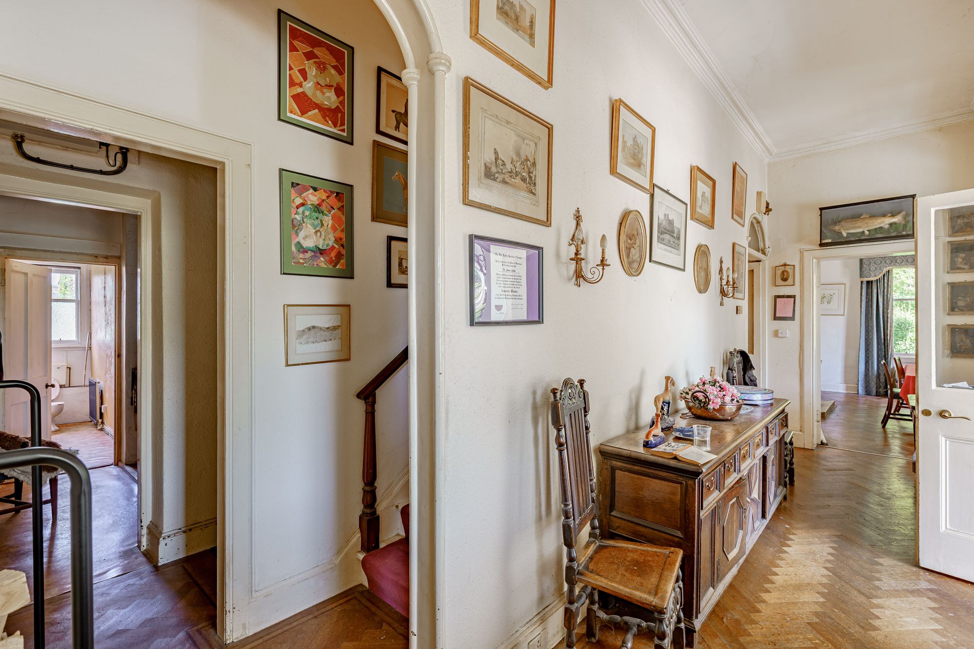 The house is entered from the front driveway through double wooden glass paned doors into a bright and spacious sun room which enjoys pleasant views of the garden and is the perfect spot for reading and relaxing. Double doors open into a well-proportioned main reception hallway with doors leading off to all of the main ground floor accommodation. The sitting room features high ceilings with beautiful ceiling cornicing, a traditional Victorian fireplace with working open fire and dual aspect windows. All of the windows in the property are traditional timber sash with single glazing however the majority of the windows have been fitted with secondary glazing on the inside. The dining room is another wonderful front-facing reception room and also features a second fireplace with open fire. Another beautiful feature of this unique property is the stylish Victorian parquet flooring which is laid in both reception rooms and reception hallway.