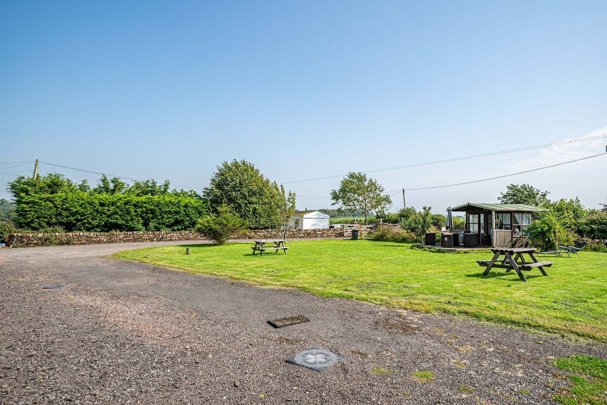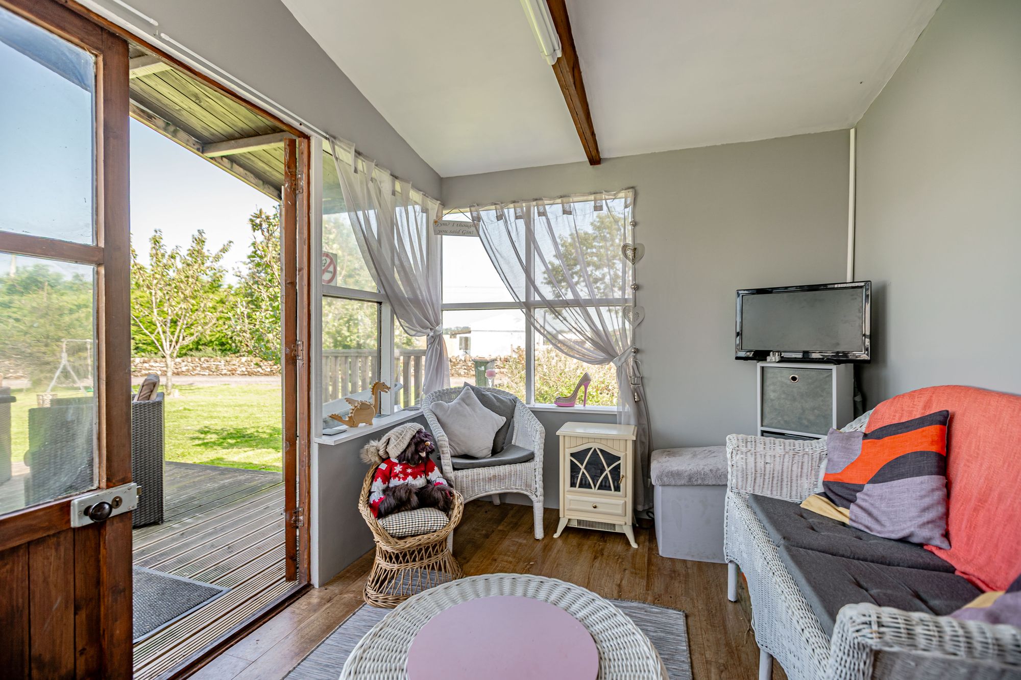 Outside, the property occupies an area of around 0.65 acres, with ample parking area and large expanse of lawn containing a summerhouse, with plastered walls and electricity installed. There is an area of land containing a static caravan which is included in the sale, having been bought by the current owners in recent years. This provided scope for further income generation or living space for family. We have not inspected the static caravan internally.