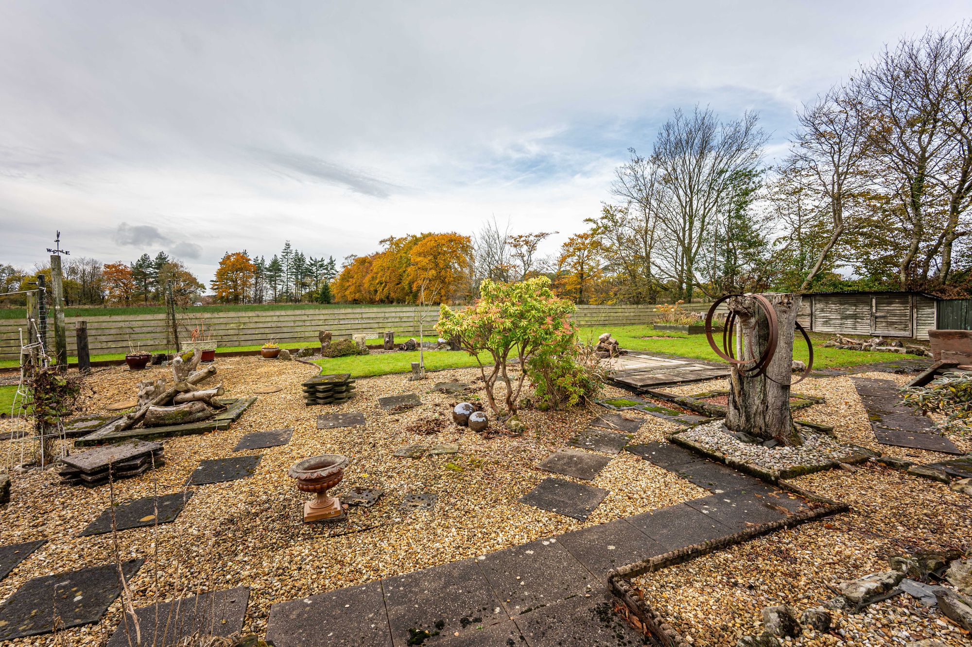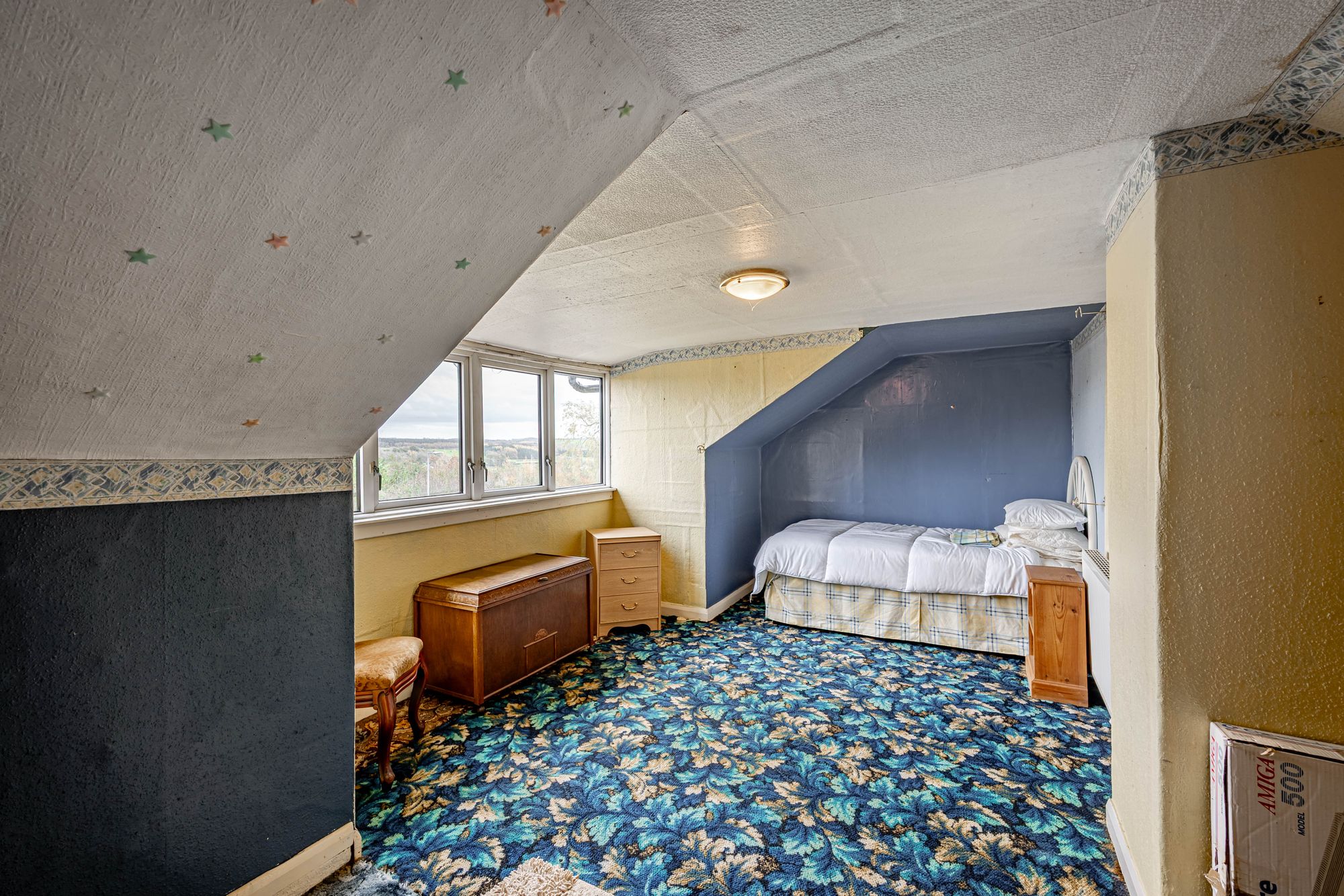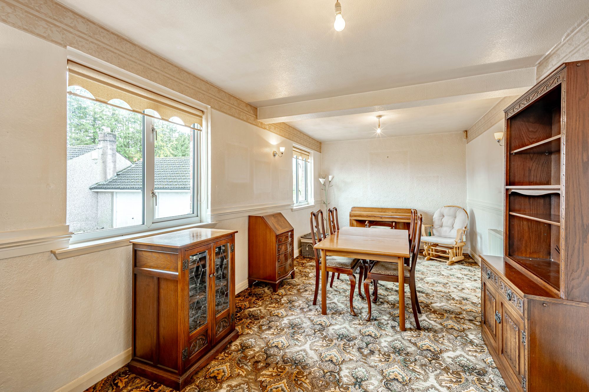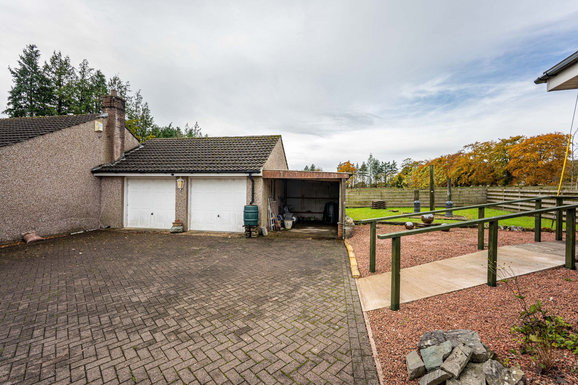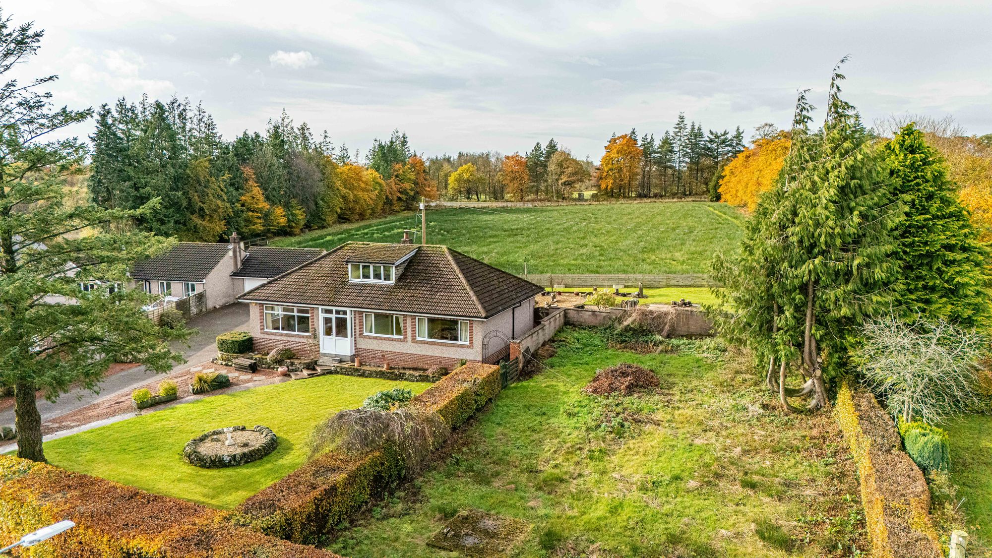 Dunroamin sits in an elevated position with stunning views, in need of modernisation, and offers an opportunity to create a beautiful home with a double garage and large garden. There is also an opportunity to create another home in the former orchard subject to necessary consents.