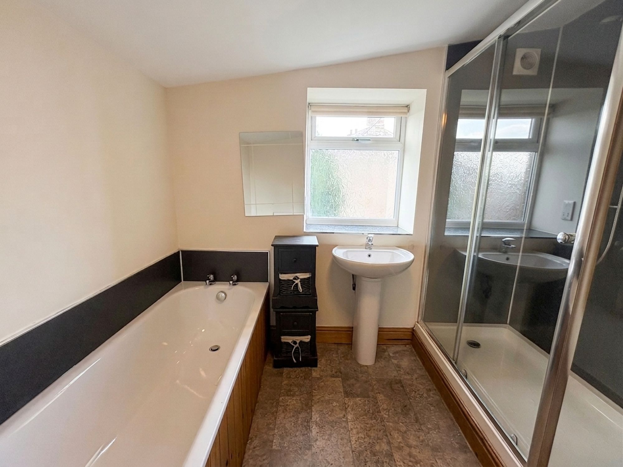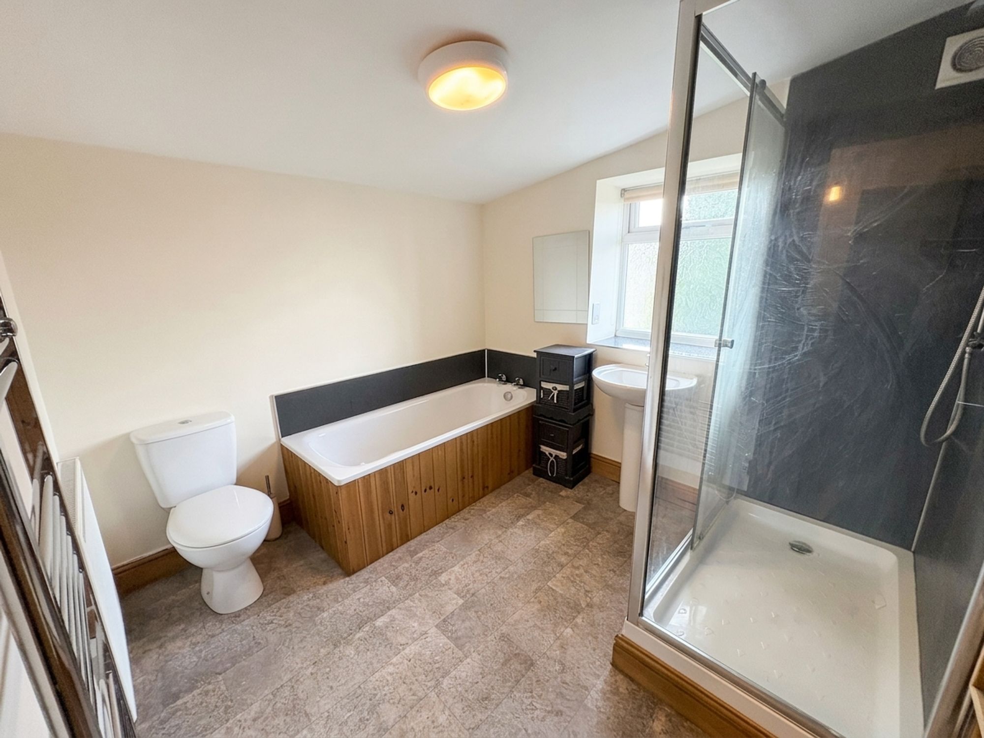 The bathroom comprises of WC, sink, large walk in shower and bath.