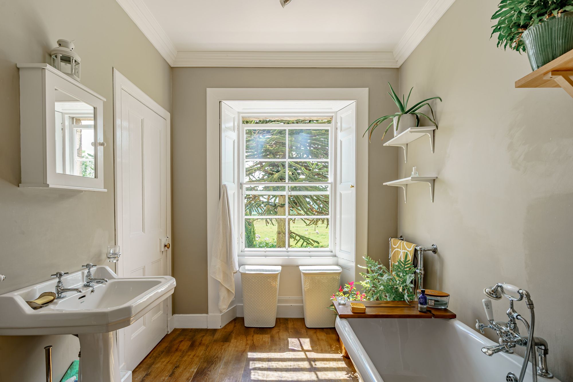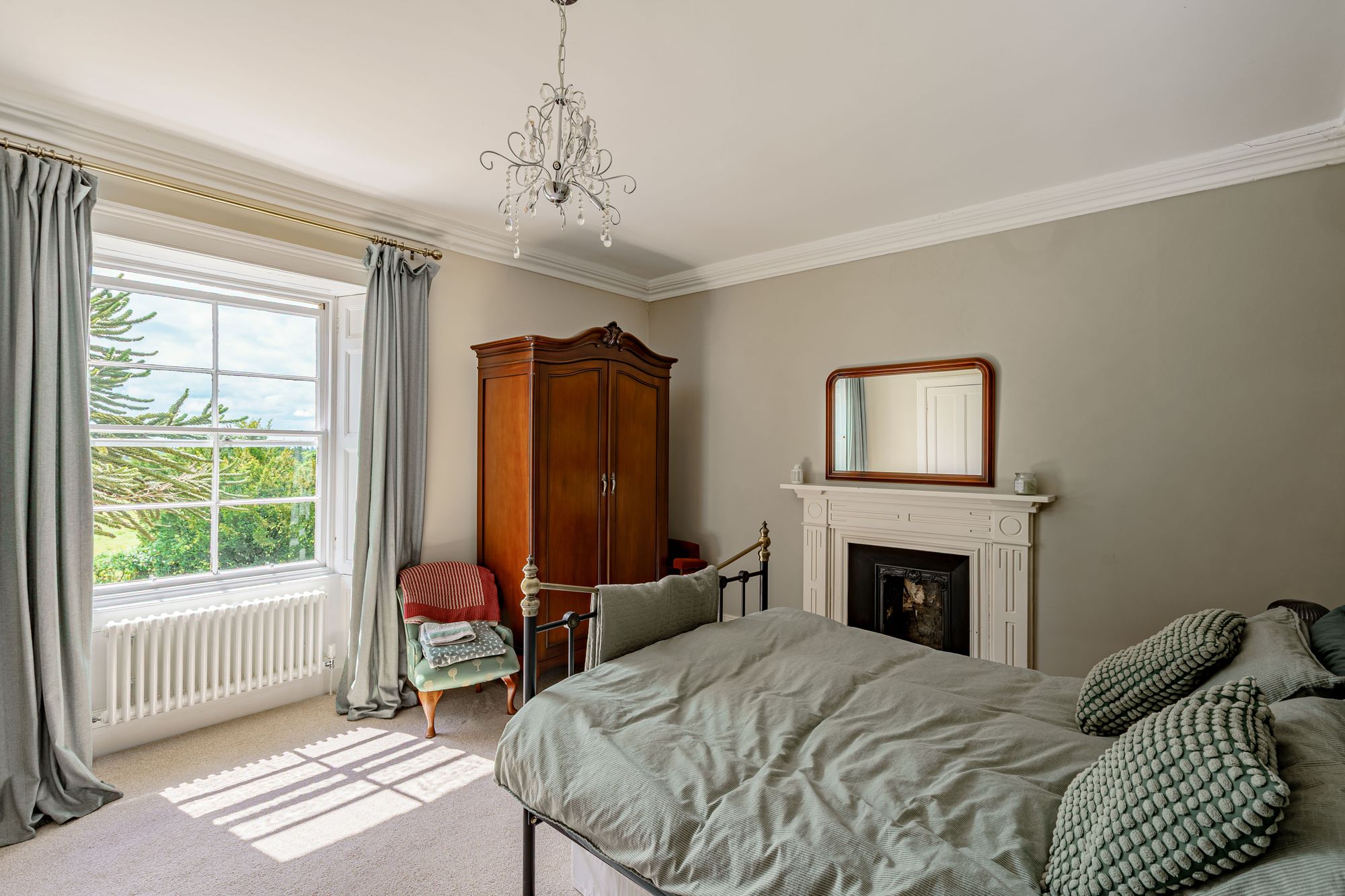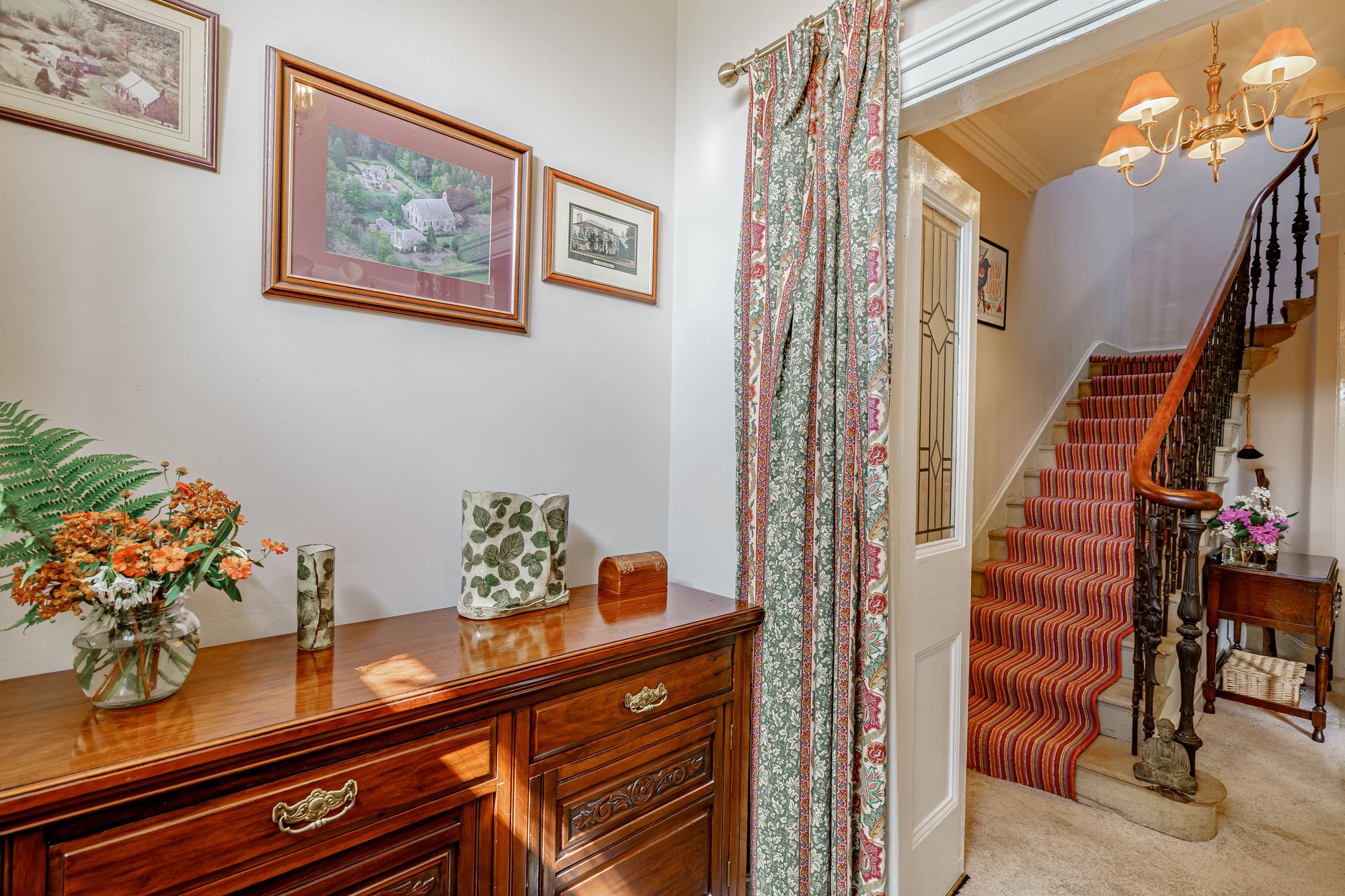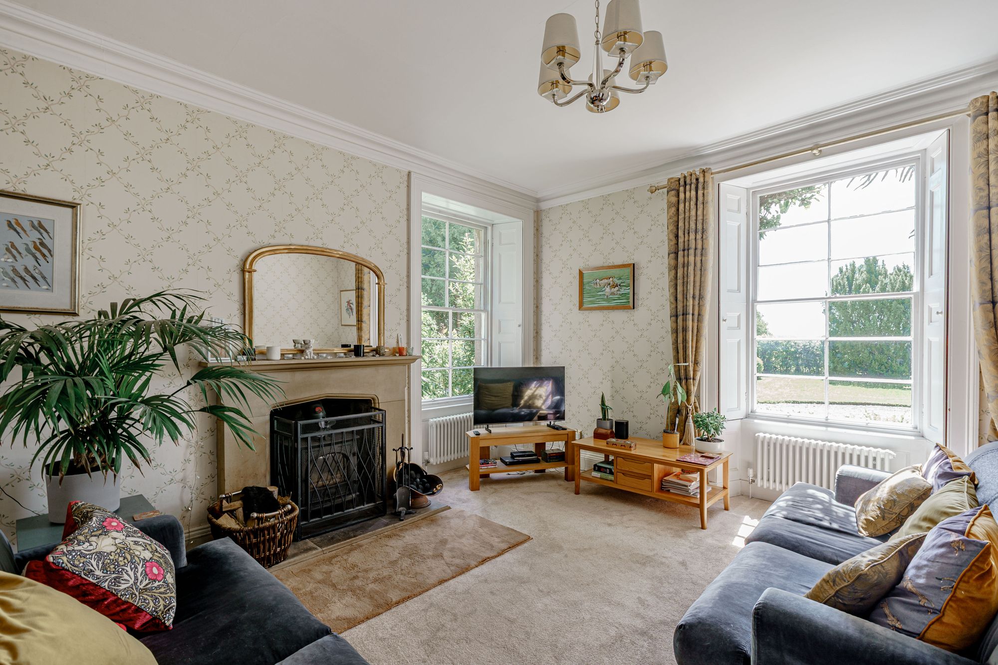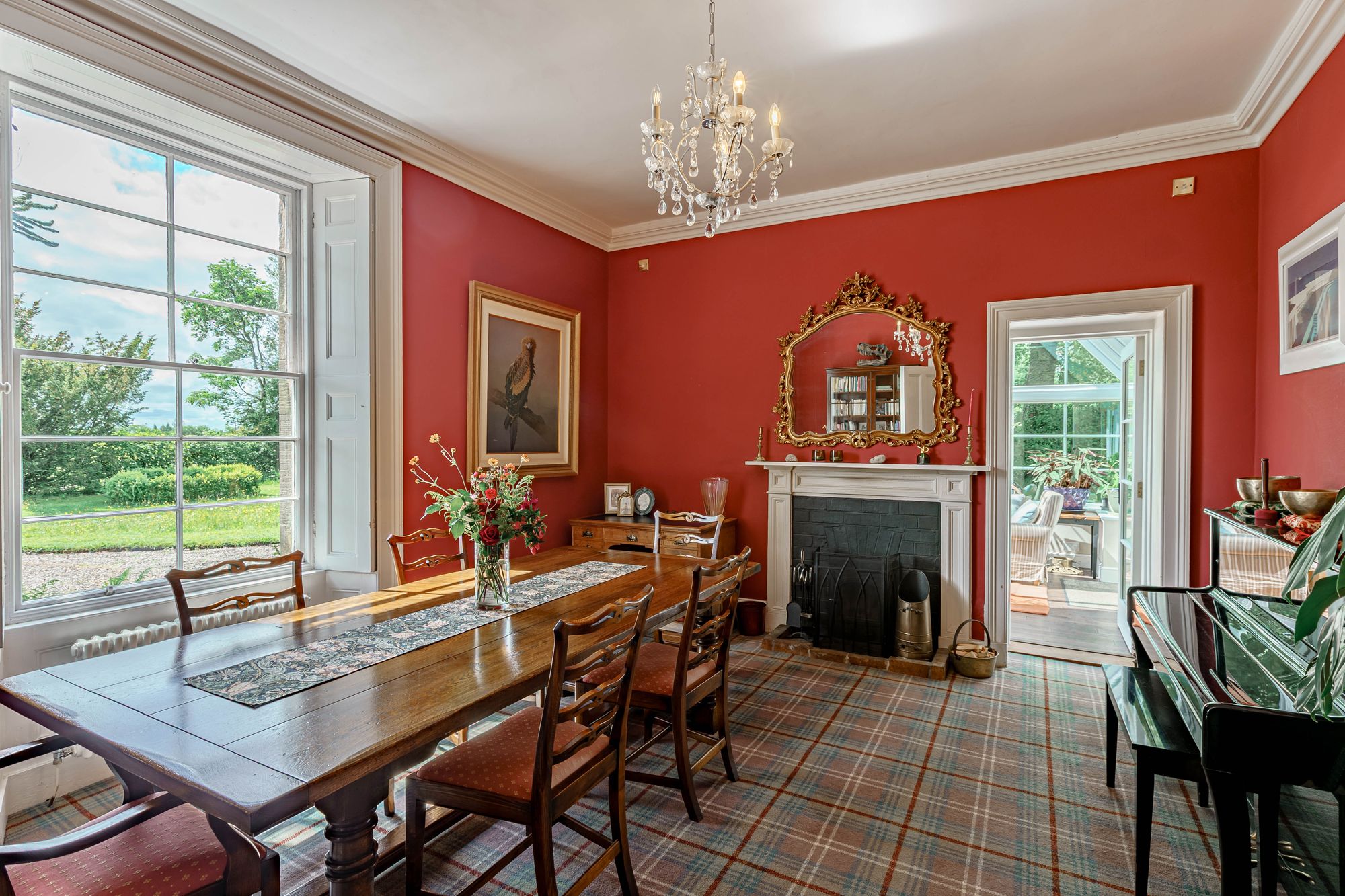The property offers a plethora of retained period features, to include wooden floors, twelve pane timber sash windows, timber shutters, cornices, traditional stone fireplaces and a magnificent stone staircase with Victorian balustrade. The solid timber front door opens into the entrance vestibule, with its original tiled floor, which in turn leads into the welcoming reception hall with glazed inner doors. The hall is bright and spacious, featuring the lovely stone staircase with sisal runner leading to the first floor. Both the sitting room and dining room are located at the front of the property, each boasting two traditional fireplaces with a freestanding multi-fuel stove in the sitting room and built-in multi-fuel stove in the dining room. Both rooms are extremely well-proportioned and enjoy dual aspect of the gardens. A fully glazed conservatory sits off the dining room, perfect for enjoying your morning coffee with the sound of birds tweeting from the garden.
