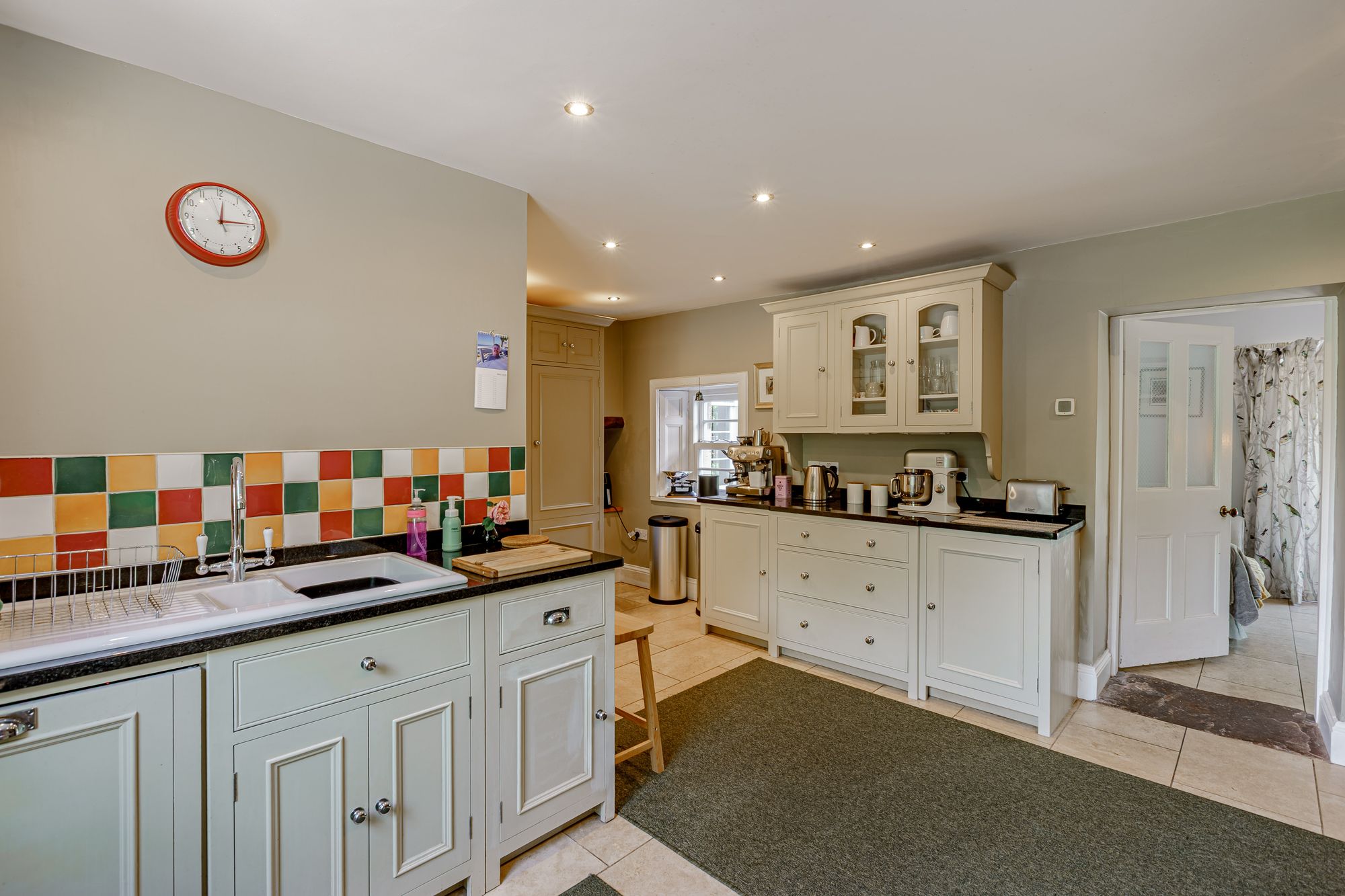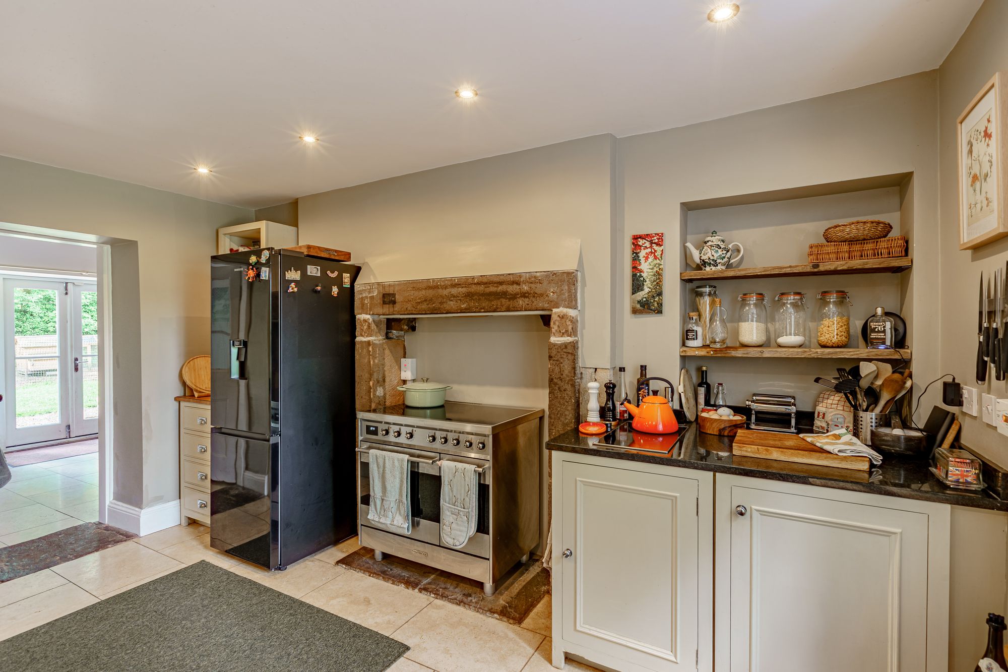 An inner hall, with understairs storage area and door to the side entrance provides direct access to the kitchen. The laundry room opposite the staircase is fitted with utility units, WC and wash hand basin. The bespoke Neptune kitchen features a range of modern cabinets with complimentary surfaces, underfloor electric heating with tiled surface, SMEG electric range and Belfast sink. There is a breakfast room off the kitchen with pleasant views of the garden and double doors onto the patio.