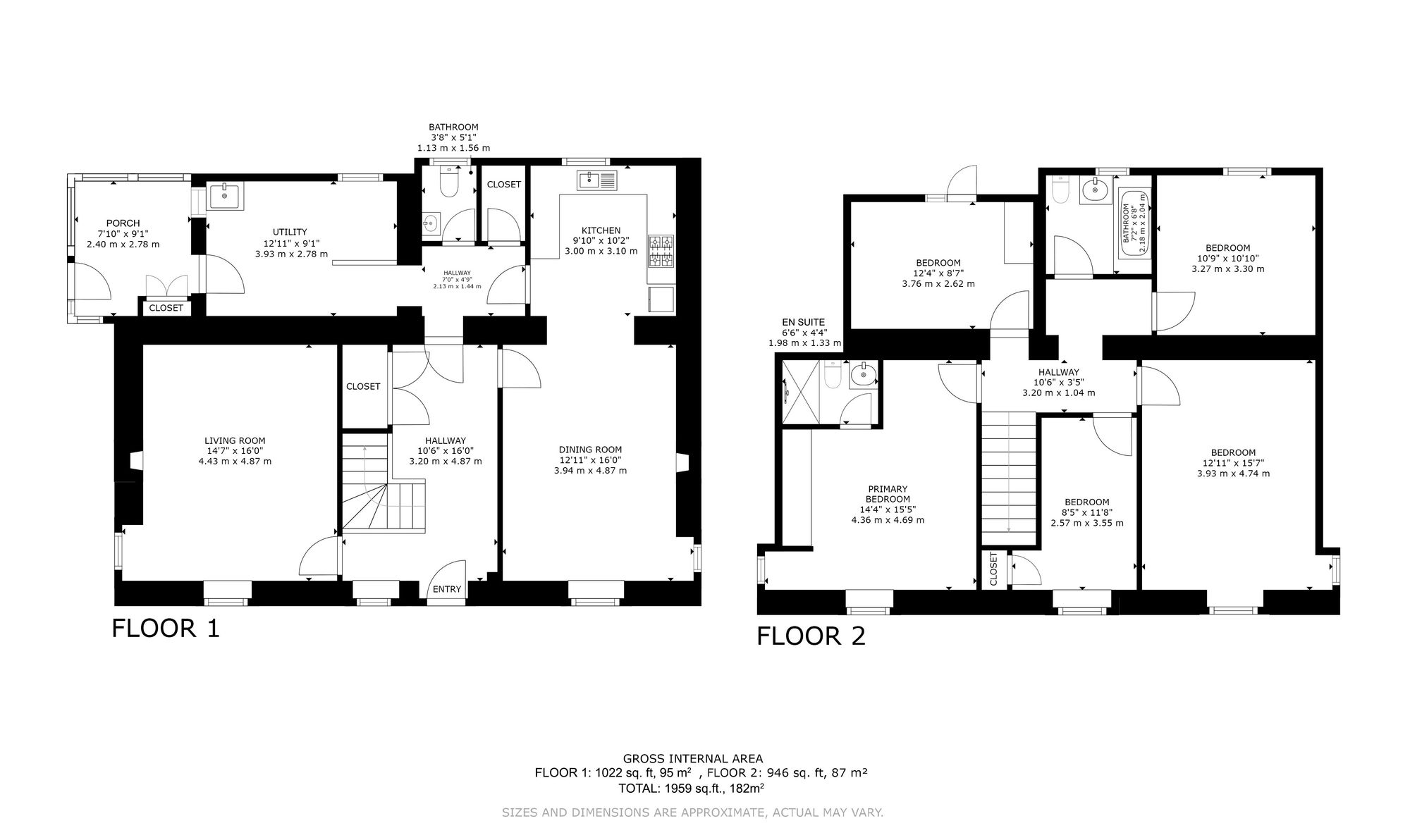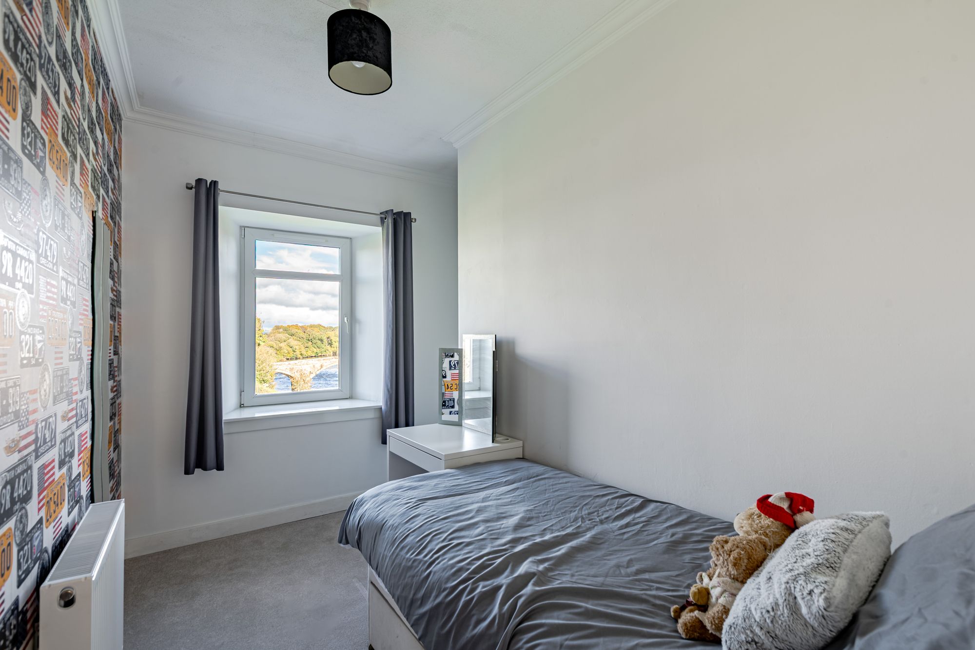 The front door welcomes a spacious entrance hallway with stairs leading to the first floor and large storage cupboard located underneath the stairs. To your left you’ll find the living room featuring dual aspect views of the River Annan and a multi-fuel stove set within a brick fireplace. The kitchen/dining room offers additional space for family entertainment, boasting a generous kitchen with a range of solid wood floor and wall cabinets, Stoves Cooking Range with four ovens, seven burner gas hob and second multi-fuel stove located in the dining area. There is a useful pantry cupboard and downstairs toilet which has been refurbished recently. The hallway and utility room can be accessed from the kitchen. The utility room is fitted with some additional wall cabinets and underneath, a sink and worktop with space and plumbing for white goods. Off the utility is a side porch where the hot water pressure tank is located, storage cupboard and door to the outside.