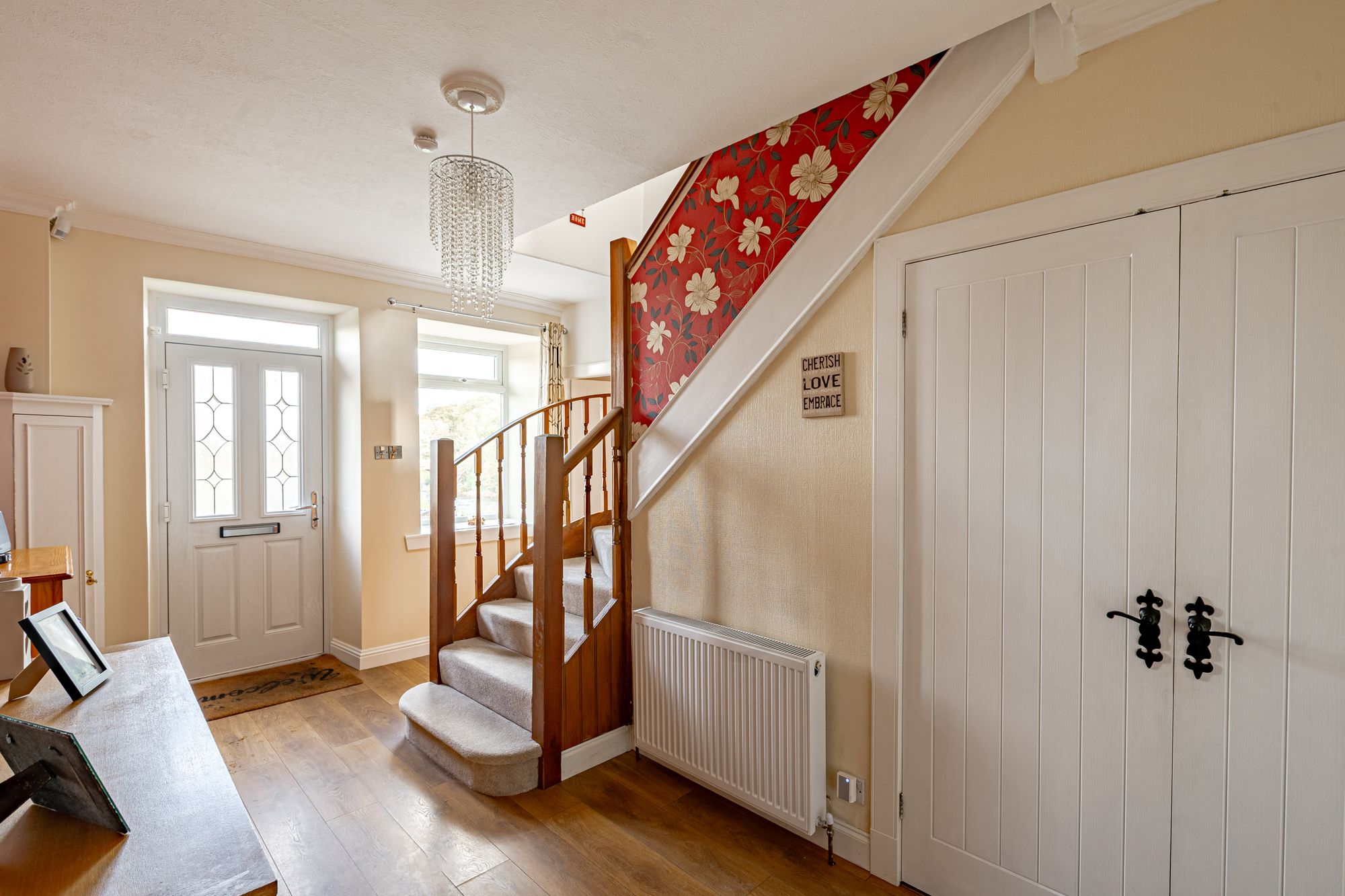 Externally the property benefits from ample off-street parking including a detached garage for further parking or storage. There is a useful workshop/wood store located beside the garage. Opposite the house there is a small section of private lawn with hedging for outdoor eating but the majority of the gardens are located at the rear and side of the property where there are expansive areas of lawn, decking off one of the bedrooms, shed and at the top of the garden, a detached summerhouse with bar and hot tub room internally and patio with glass balustrade externally, perfect for relaxing or hosting. The hot tub is in working order and can be included in the sale. A variety of mature trees, hedging and stone walling nicely sections off areas of the garden with path access from either side of the house.