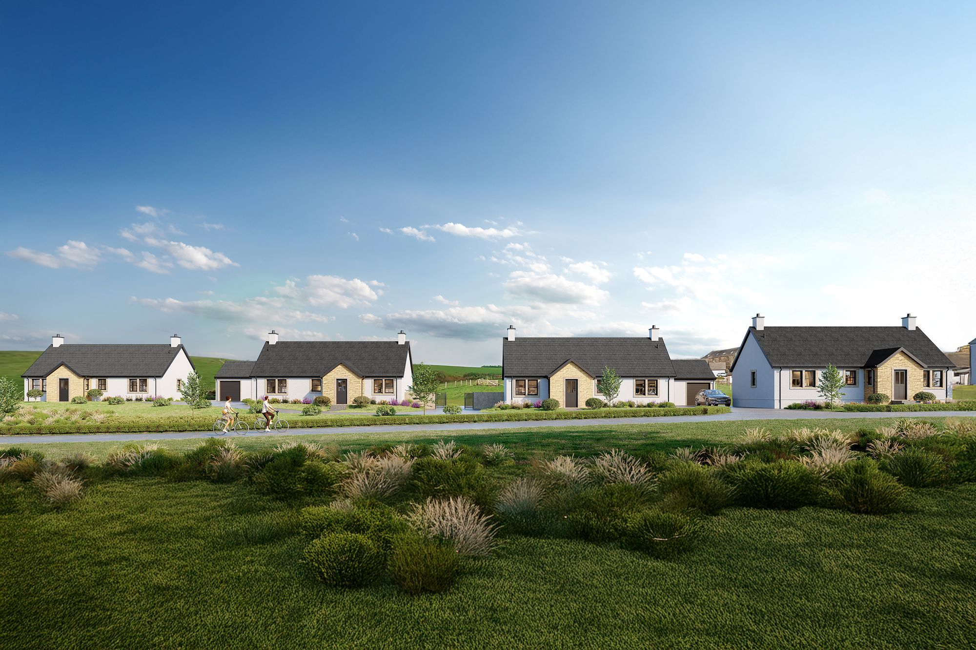 These exceptional detached properties have been finished to an exemplary level. The ground floor is finished with a superb engineered oak flooring throughout the living spaces and carpet to the bedrooms. They bungalows benefit from both advanced air source heat pump and solar for the latest in sustainable living.