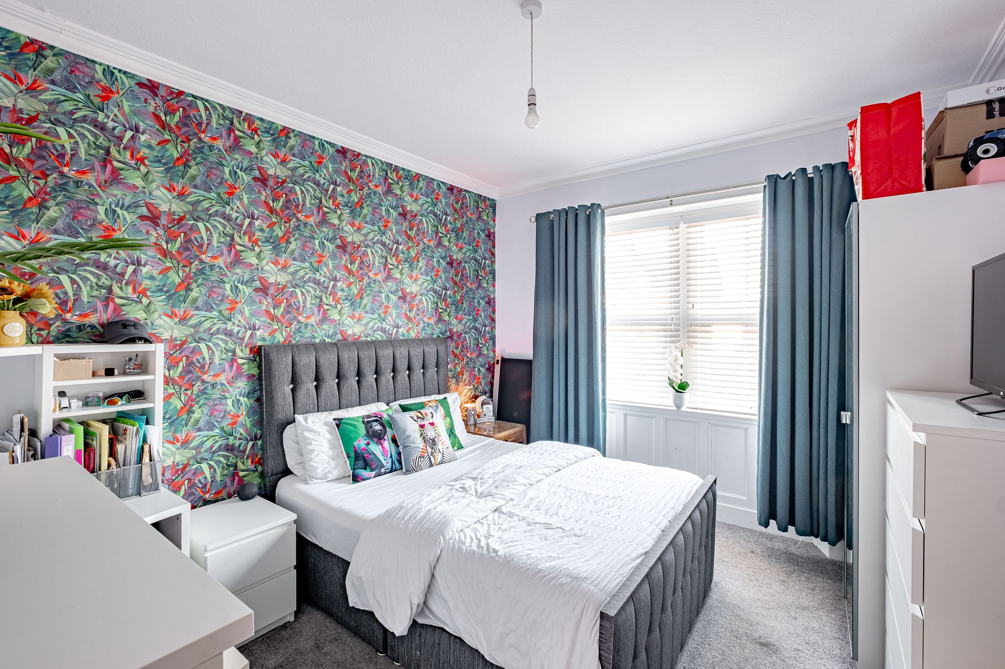 There are three bedrooms on the ground floor, two are generous doubles and one a large single or ideal office. The family bathroom is also located on the ground floor and is complete with bath, separate shower cubicle with mains fed shower, hand washbasin with vanity below and WC. There is an electric shower still connected as back up. The bathroom is partially tiled with vinyl flooring. Upstairs there is a larger attic bedroom with velux windows to each side and storage built into the eaves. There is a large landing area which could also be used as a small office/working space and access to the roof. Upstairs there is a separate shower room which is perfect if you’re having guests staying over.