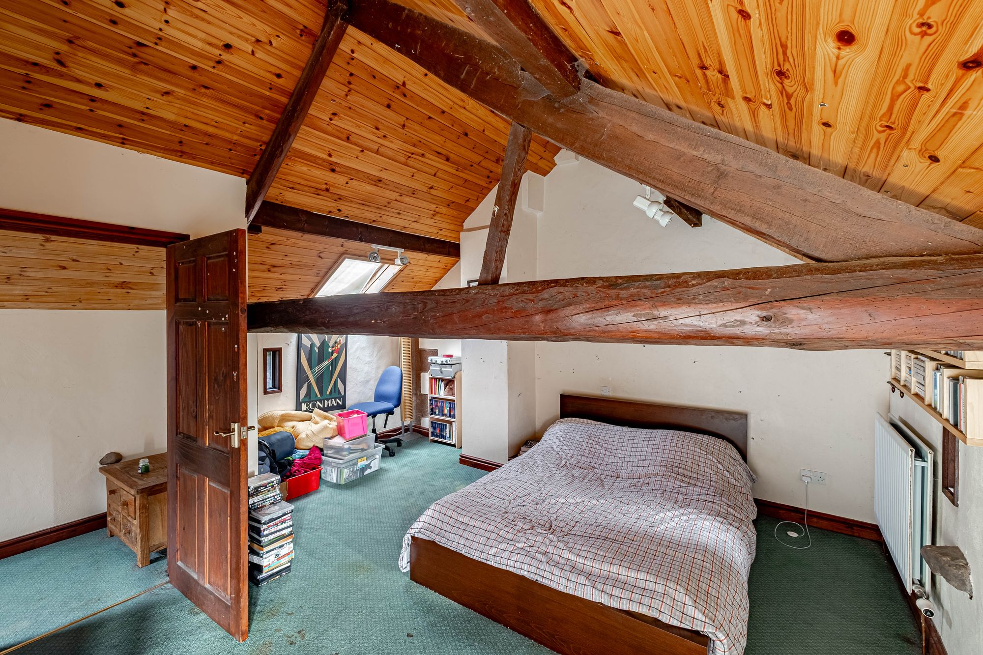 Stairs lead to a study space on the landing with a double bedroom on one side and a large bathroom on the other, including a corner bath with shower over, WC and wash basin. There is scope to split this room to create an extra bedroom and a smaller bathroom.