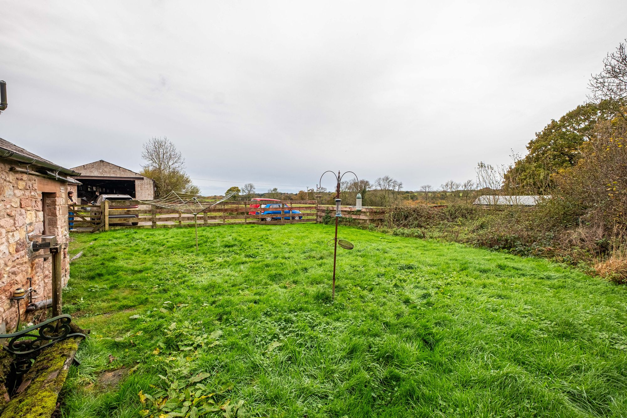 There is a small garden area to the front of the property and a larger enclosed lawn area to the rear. The access is shared with the owners of the adjacent barn and there is parking space for several vehicles. The garden borders neighbouring fields, giving attractive open views over the surrounding countryside, and lovely sunsets.