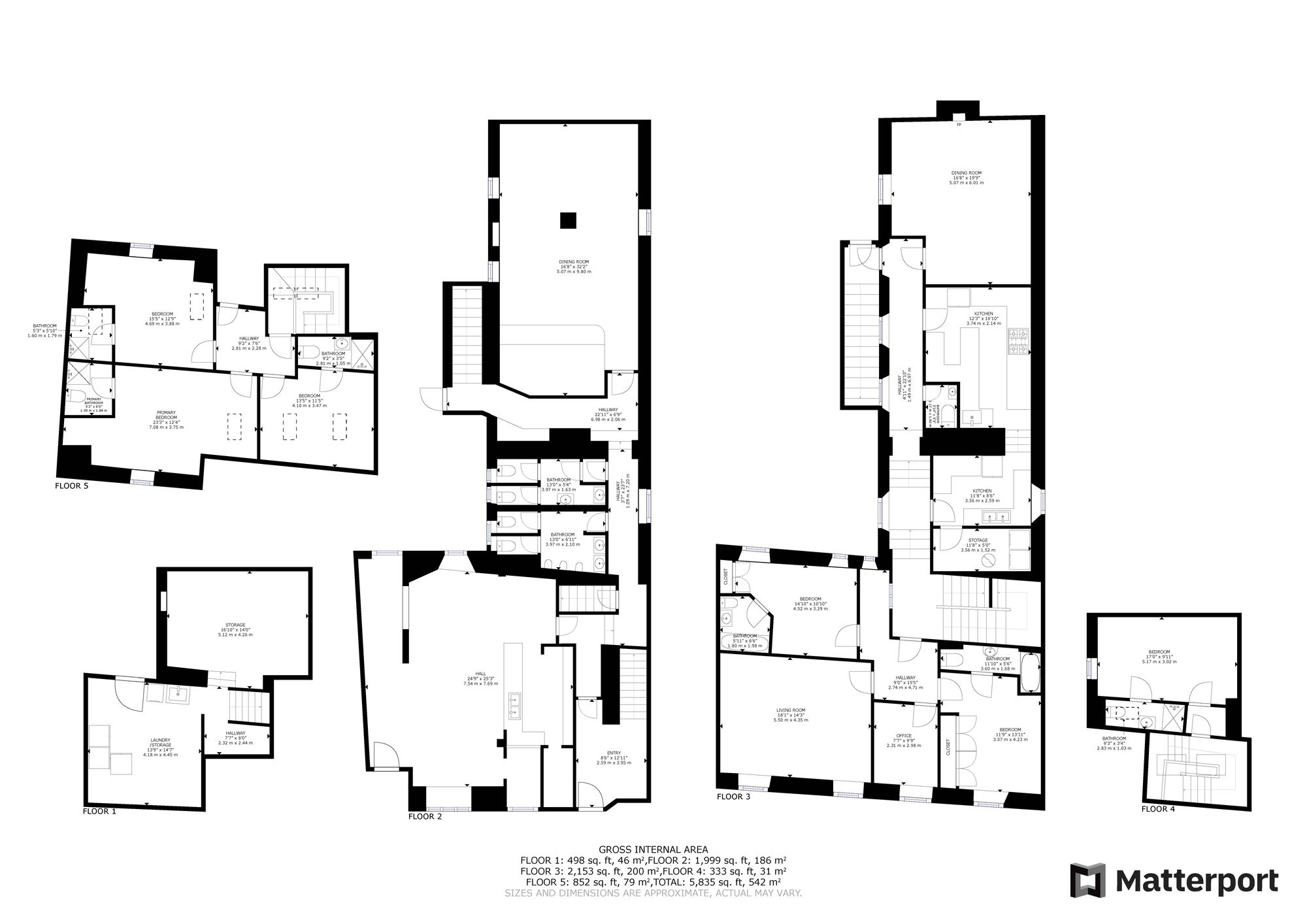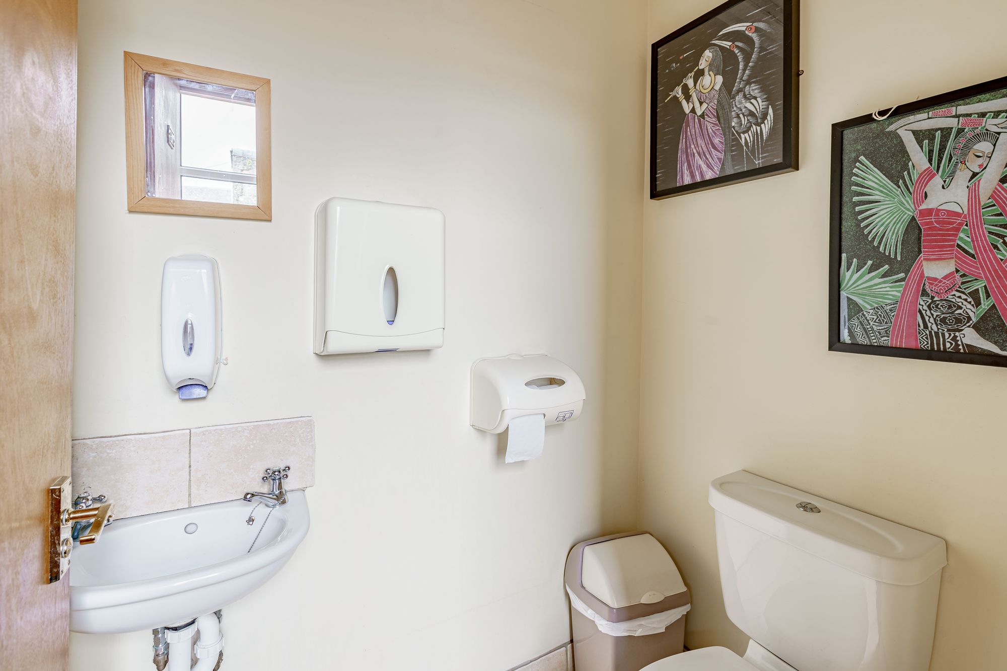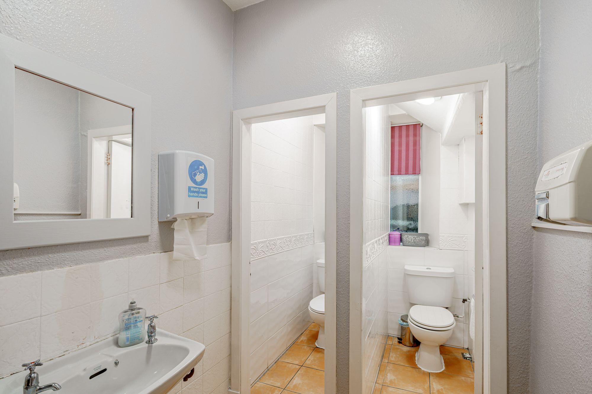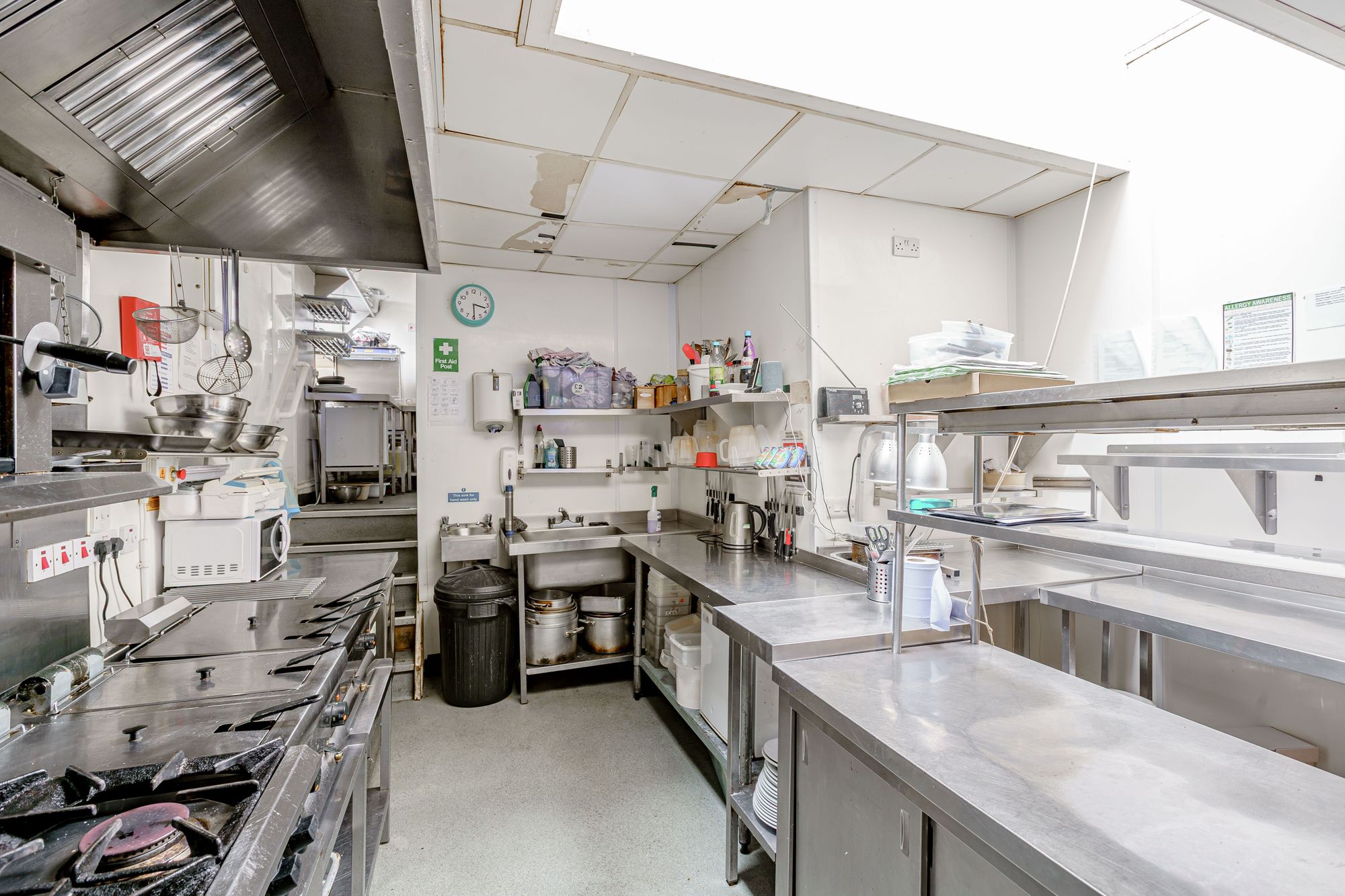 There is a fully fitted commercial kitchen comprising two large chef fridges, commercial gas range with six ring gas stoves and gas grill above, five lincat deep fat fryers, preparation corners with preparation fridges. At the back of the kitchen is a prep area where the desserts are usually prepped and two large sinks with a commercial dishwasher. There is a boiler room with two washing/drying machines and two large hot water tanks. The building is on a split heating system. There is a staff toilet on the first floor and customer toilets on the ground floor.