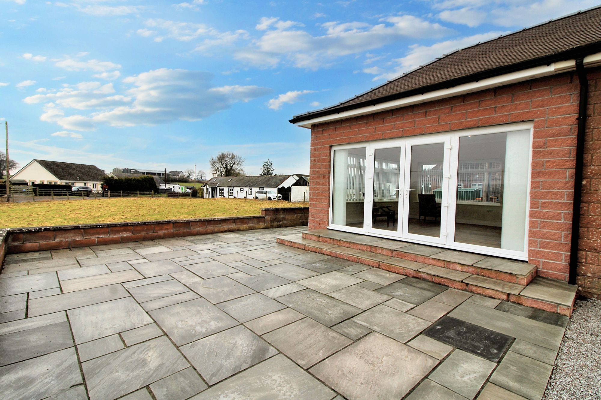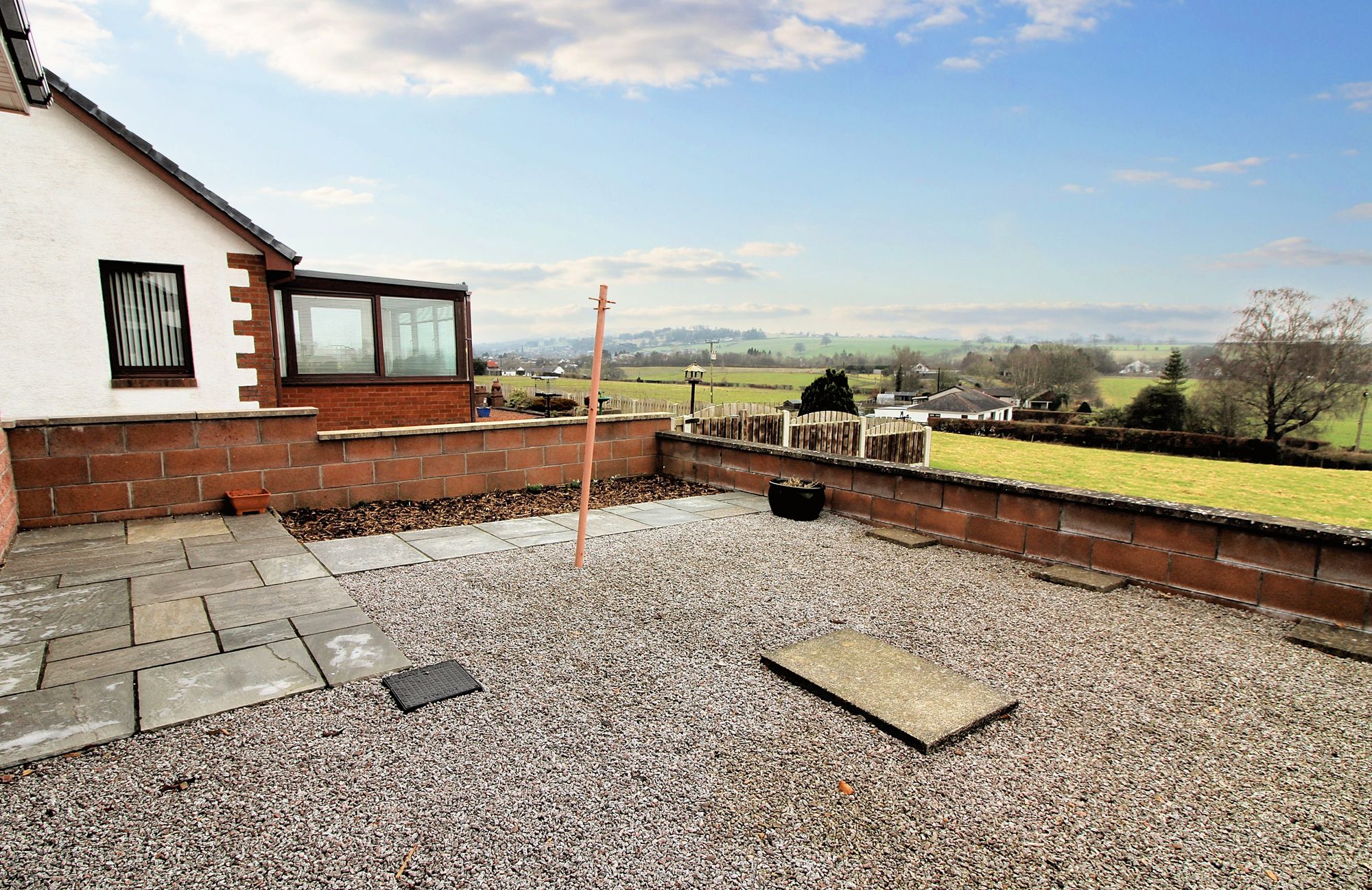 Outside, there is a lovely patio benefitting from pleasant views. The gardens are mostly laid with loose stone and very convenient for those who do not have time for maintaining grass.