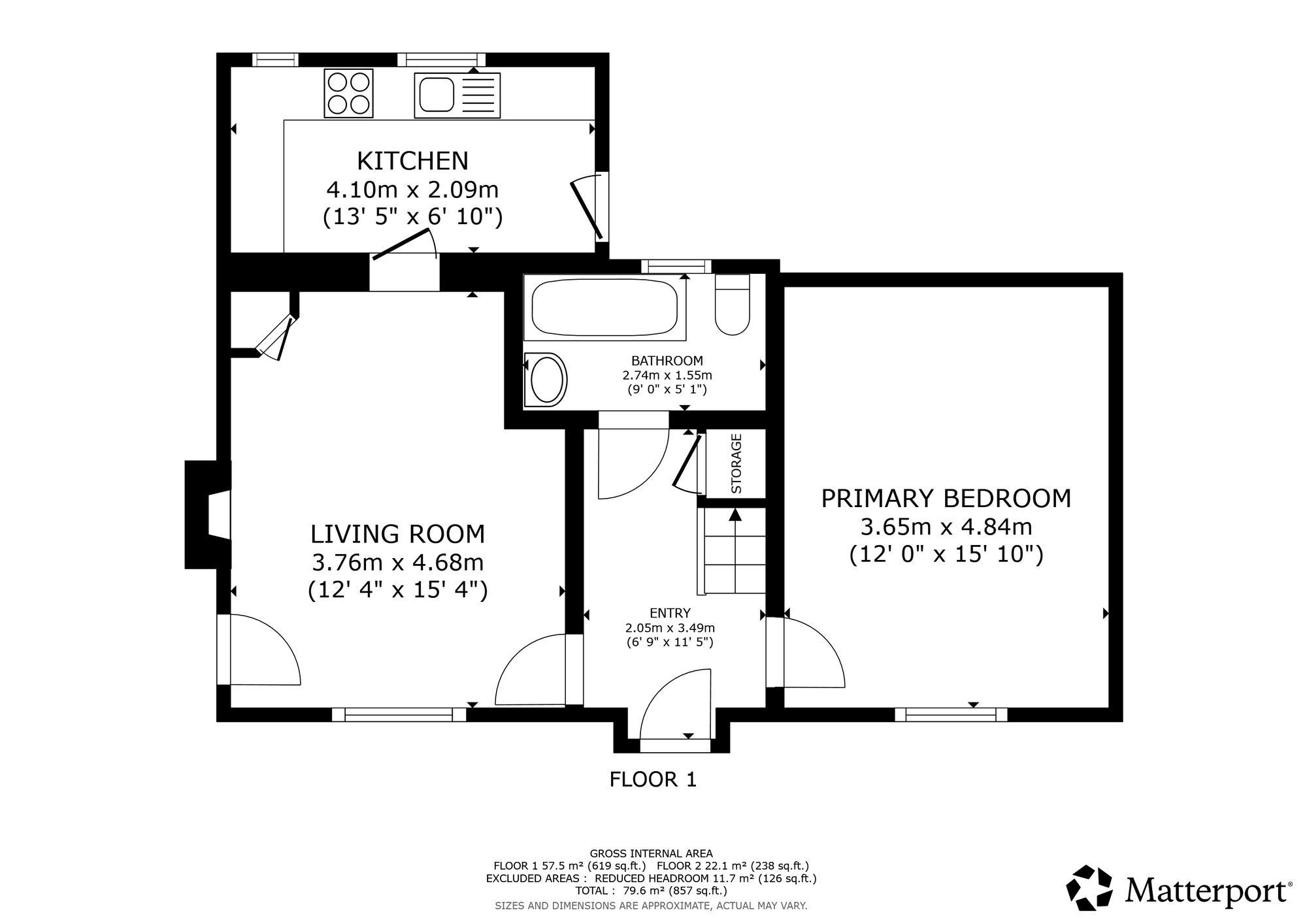 The front door opens to a spacious entrance hall with bathroom directly ahead and stairs to the first floor landing. The living room is well proportioned and features a freestanding woodburning stove set within a brick fireplace. There is a cupboard with shelving and a corner cupboard which stores the recently installed hot water pressure tank. The kitchen is located at the rear of the property with a back door proving access to the rear garden. The kitchen comprises white floor and wall units with an integrated electric oven and hob. There is a stainless steel drainer sink with mixer tap and gap under the worktop for a washing machine.