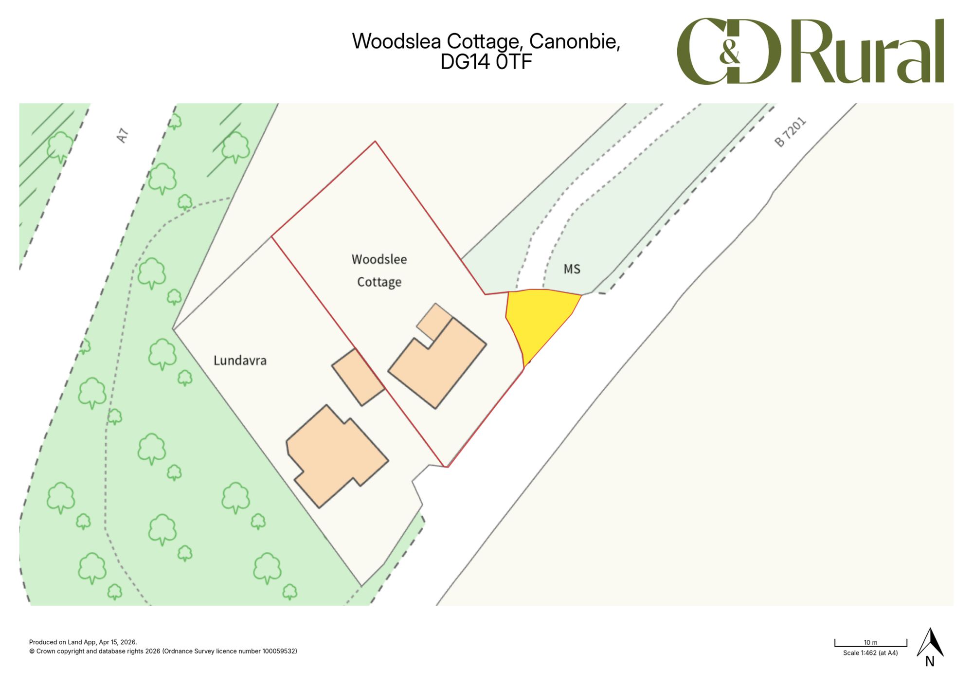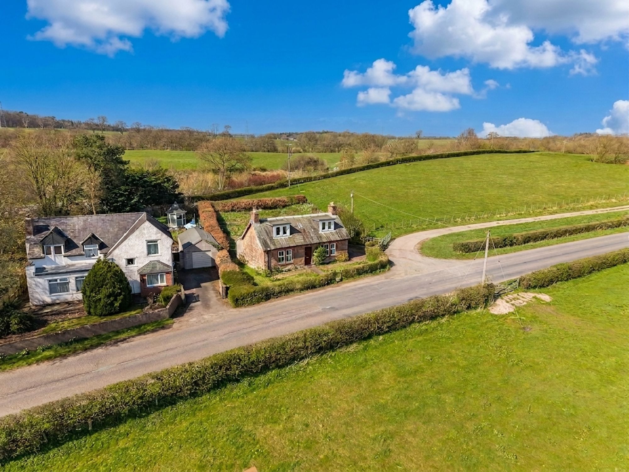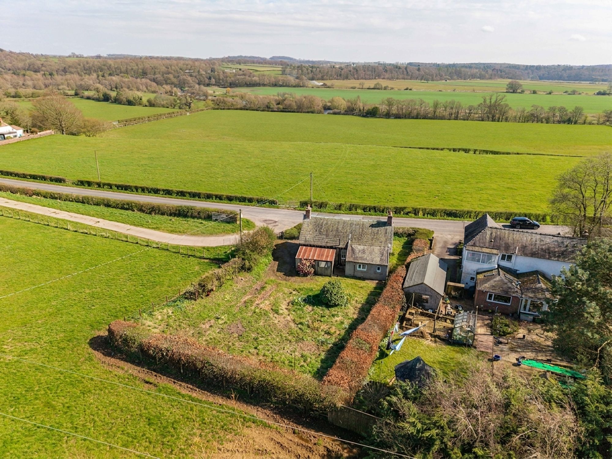 Woodslee Cottage is situated in an accessible yet rural location. There is a path from the road leading to the front door with sections of lawn either side. At the side of the property there is gated access for parking. A right of access will be granted over the farm track. There is a timber cladded garage/shed attached to the property. The gardens at the rear are private and offer space for a possible extension subject to necessary planning consents.